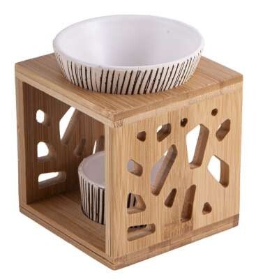 Elegante Aromalampe aus Bambus mit Keramik. Bambus gilt als Symbol für Lebenskraft und Lebenswillen. So wird der sinnliche Vorgang des duftenden Geschehens mit Kraft und Stärke gefüllt.